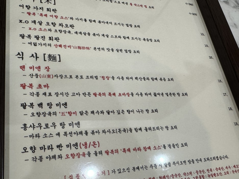 저는 간단하게 식사만 하려고 방문했습니다. 그런데 메뉴판을 보면 평소 일반적으로 보던 중식집 메뉴명이 아니에요. 처음엔 이게 뭘까 했는데요, 설명을 보고 아~ 이게 짜장이구나! 이게 짬뽕이겠구나~! 를 추측했습니다ㅎㅎ