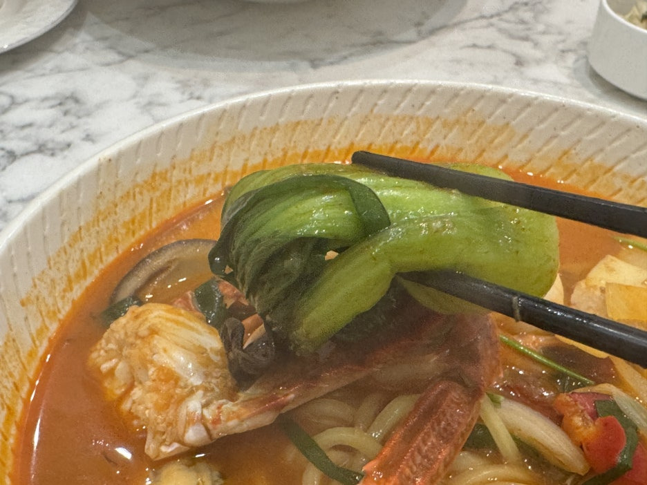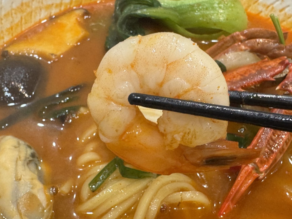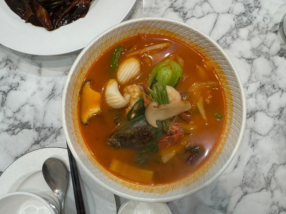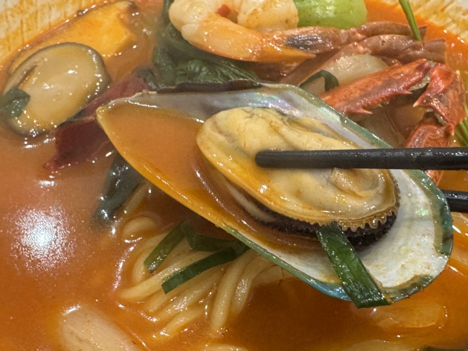 재료가 얼마나 실하게 들어있는지 보여드릴께요. 해산물 모두 탱글하고 신선한 느낌이었구요 송이버섯 슬라이스였지만 씹자마자 퍼지는 송이향이 엄청났습니다. 꽃게도 들어있는데요 구성만으로 봤을때 가격만큼 재료를 넣었구나 싶게 보였어요. 짬뽕 좋아하시는 분들은 꼭 한번 드셔보실만 합니다.